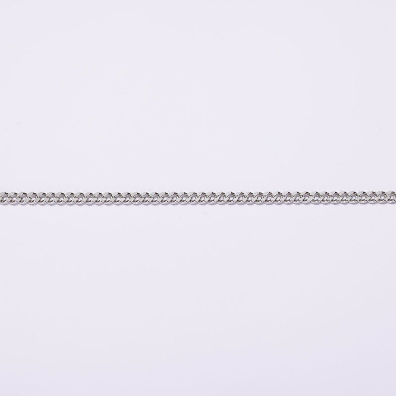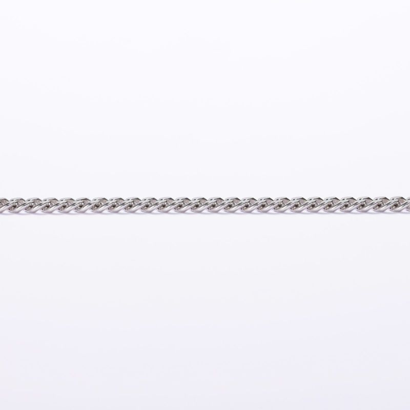 上下にカットを施した2面カット喜平です。プラチナの輝きを楽しんで頂けます。シンプルなチェーンはユニセックスにご愛用いただけます。独立行政法人造幣局の検定マーク(※ホールマーク)入り。