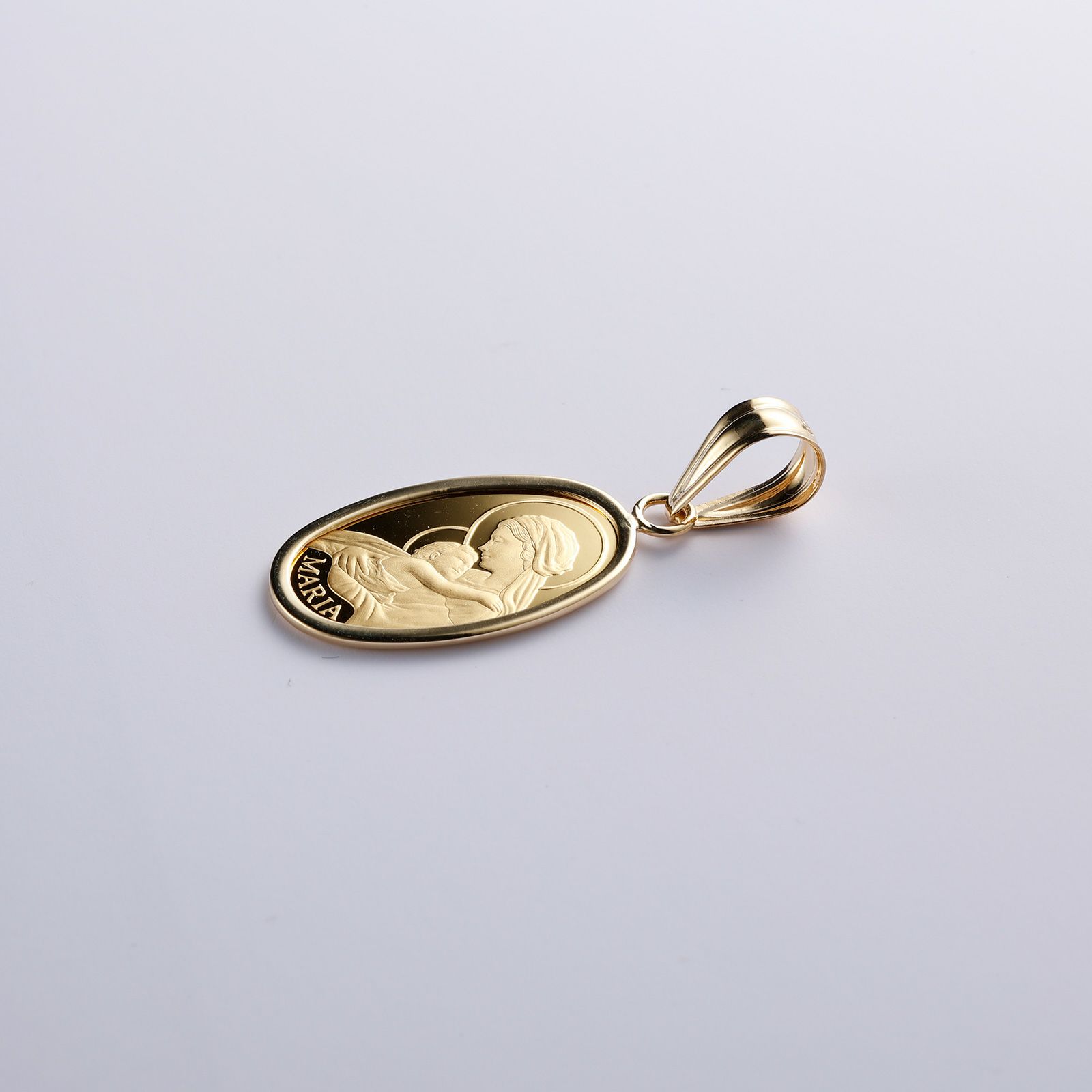 純金のコインモチーフを用いてペンダントトップを仕上げました。マリアのデザインをあしらったデザインです。24金の素材を楽しんで頂けます。長い間変わらない24金の色味を楽しんで頂けます。