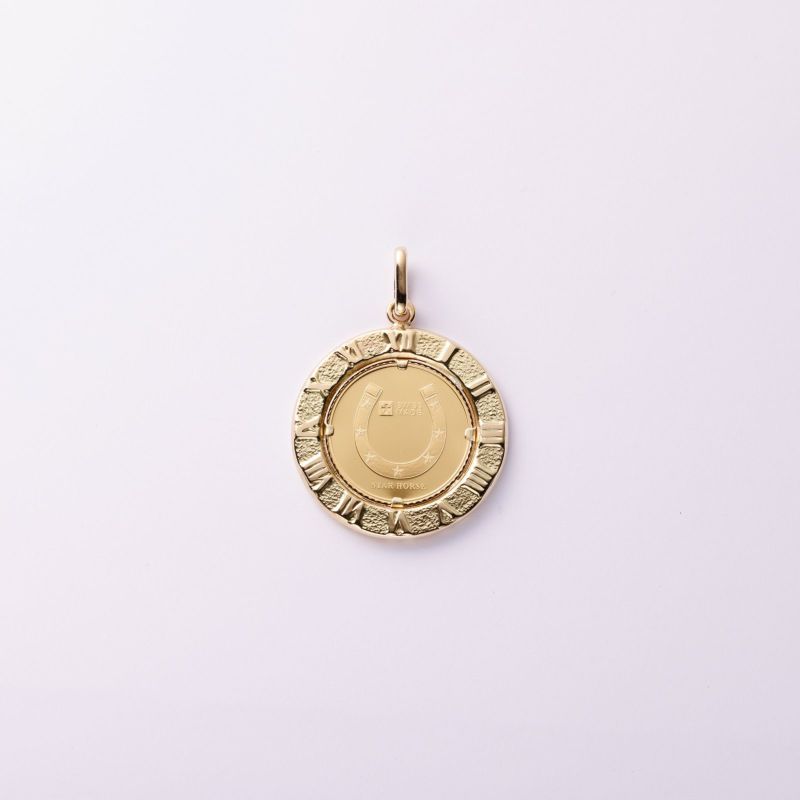 純金のコインを用いてペンダントトップを仕上げました。馬は武士の勝ちを運んでくることから、勝負運のモチーフとしてお召いただけます。24金の素材を楽しんで頂けます。
