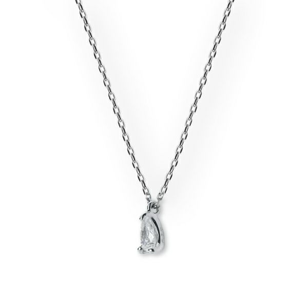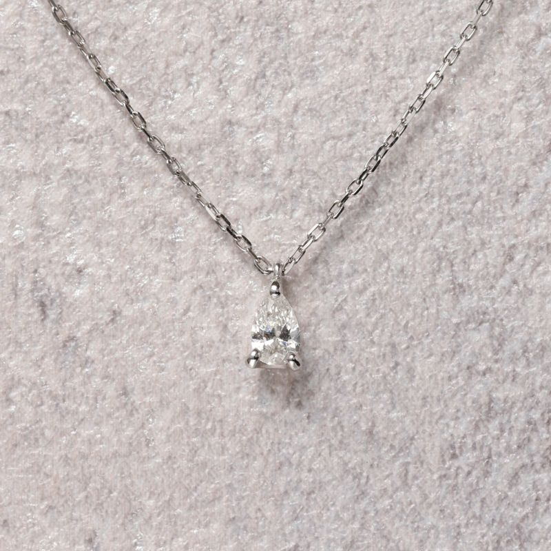 雫型のダイヤを留めたシンプルなペンダントネックレス。可憐な輝きが目を引きます。おしゃれな普段使いに最適です。