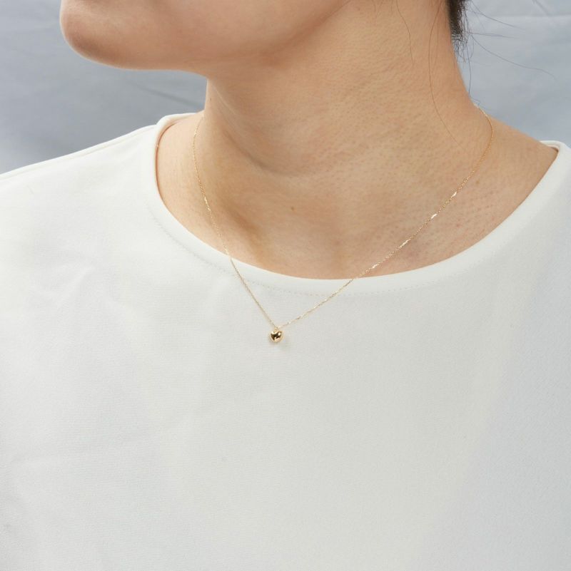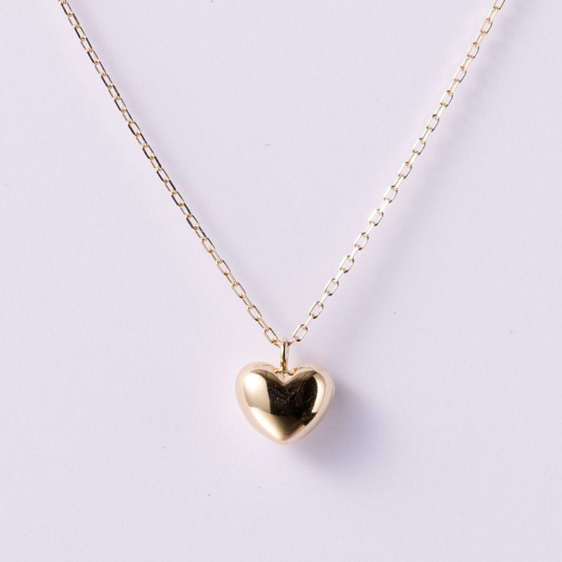 ぷっくりしたハートの地金をモチーフにした、ペンダントトップです。小さ目のハートは、甘くなりすぎずシンプルにお召いただけます。K18イエローゴールドなので、色味も変わりづらく末永くお召いただけます。