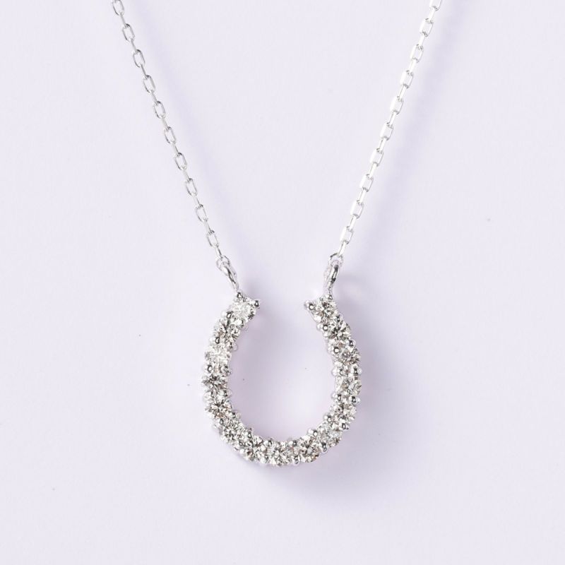 馬蹄のモチーフをダイヤモンドでデザインしました。馬蹄は幸せを貯める形と言われている、ずっと変わらないラッキーモチーフです。ダイヤモンドの色味をすべて揃えましたので、一様で上品な輝きを楽しんで頂けます。
