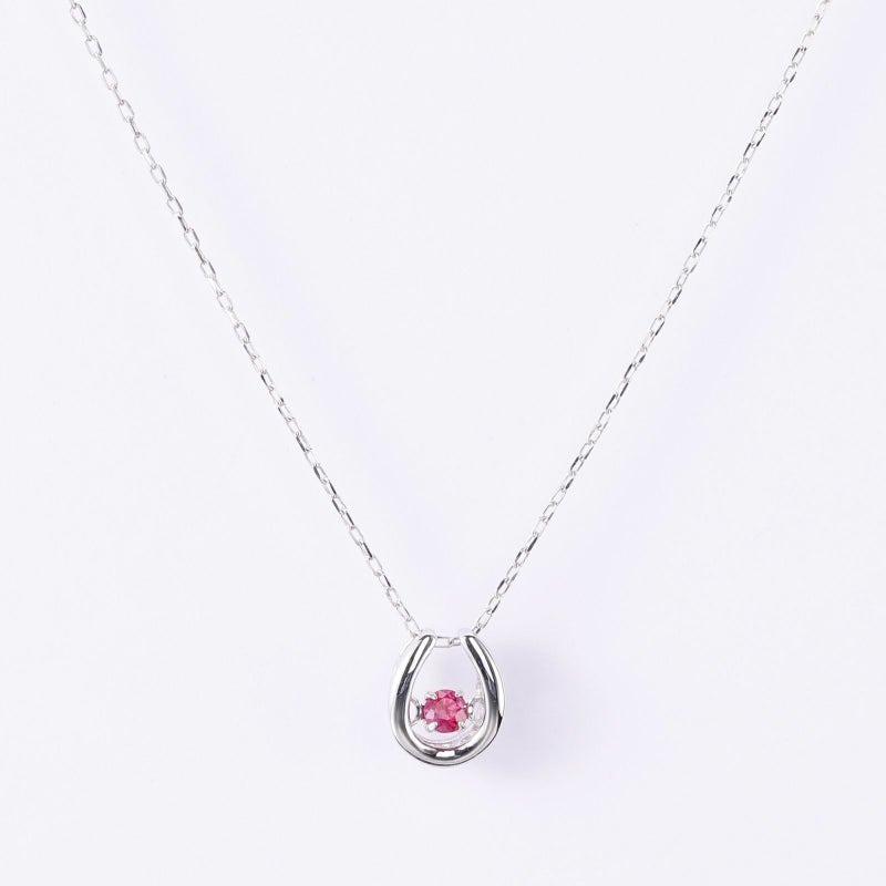 馬蹄型のモチーフにルビーをセッティングしたネックレスです。時代を問わずに使用いただけるデザインです。12ヶ月分のご用意がございます。