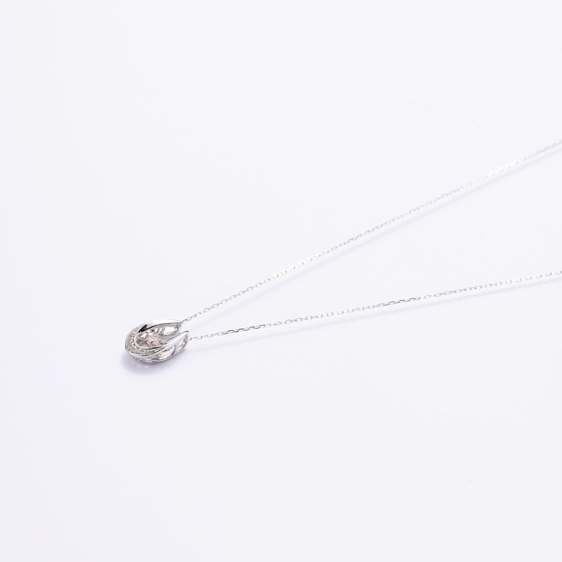 馬蹄型のモチーフにピンクダイヤモンドをセッティングしたネックレスです。馬蹄には幸せを貯めるという意味があります。時代を問わずに使用いただけるモチーフなので、何世代にもわたってご愛用いただけます。