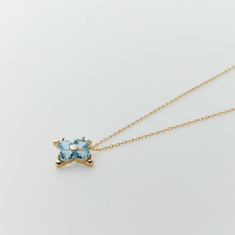 近頃人気が復活している色石のK10イエローゴールドペンダントネックレス。ブルートパーズの爽やかなスカイブルーがどんな着こなしにも彩りを添えてくれます。軽やかな色味で使いやすいペンダントです。