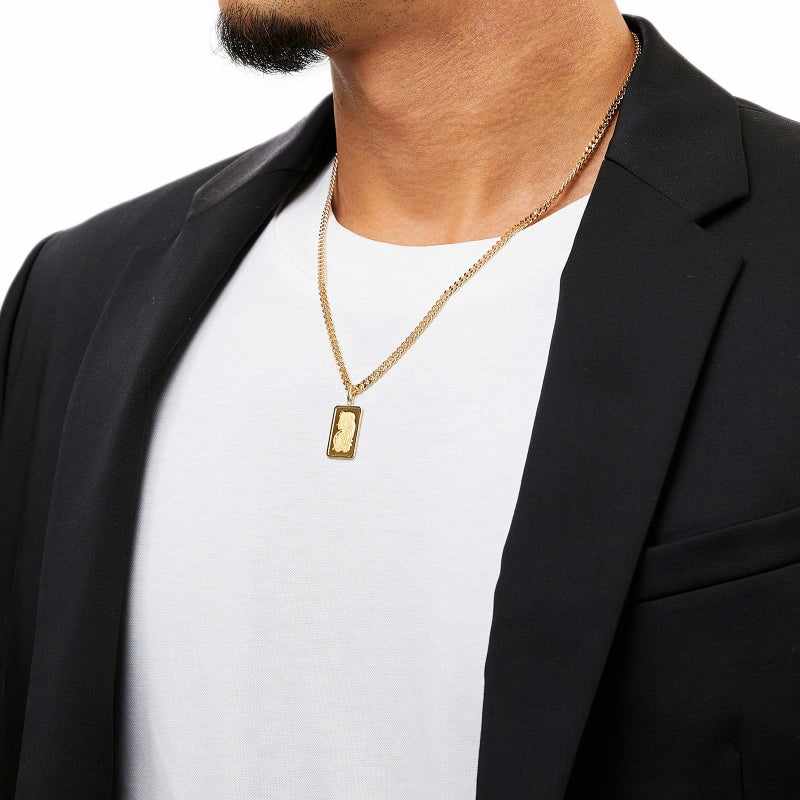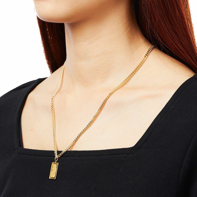 ローマ神話の幸運の女神【フォルトゥナ】のK24イエローゴールド【 2.5g】インゴットペンダントトップです。K18イエローゴールドのシンプル枠で存在感がありながら軽やかに胸元を飾ります。