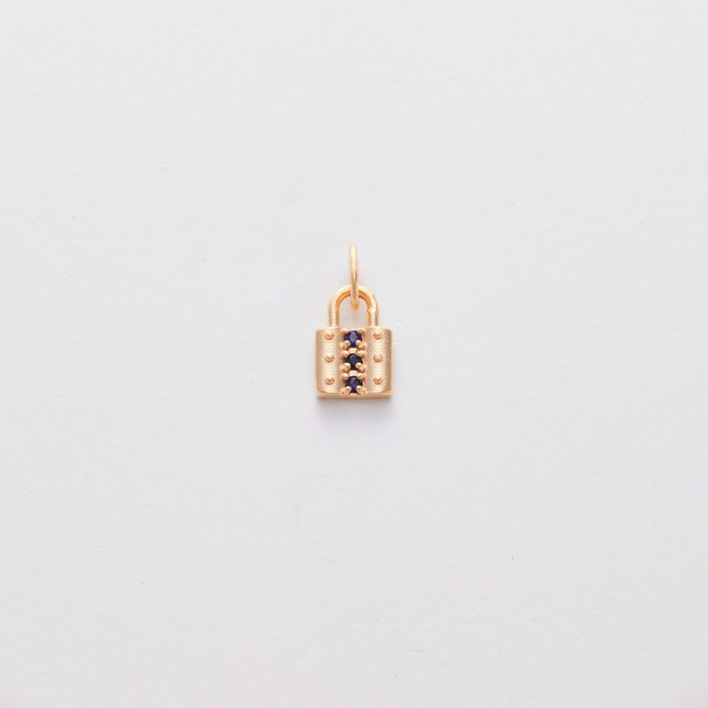 K10イエローゴールド サファイア 南京錠 ペンダントトップ