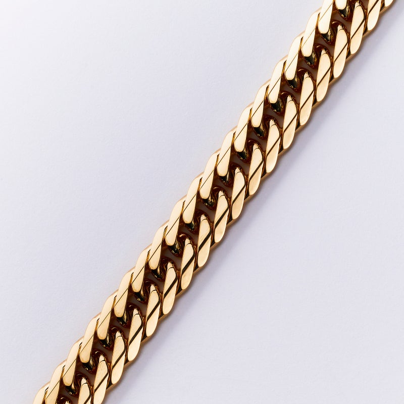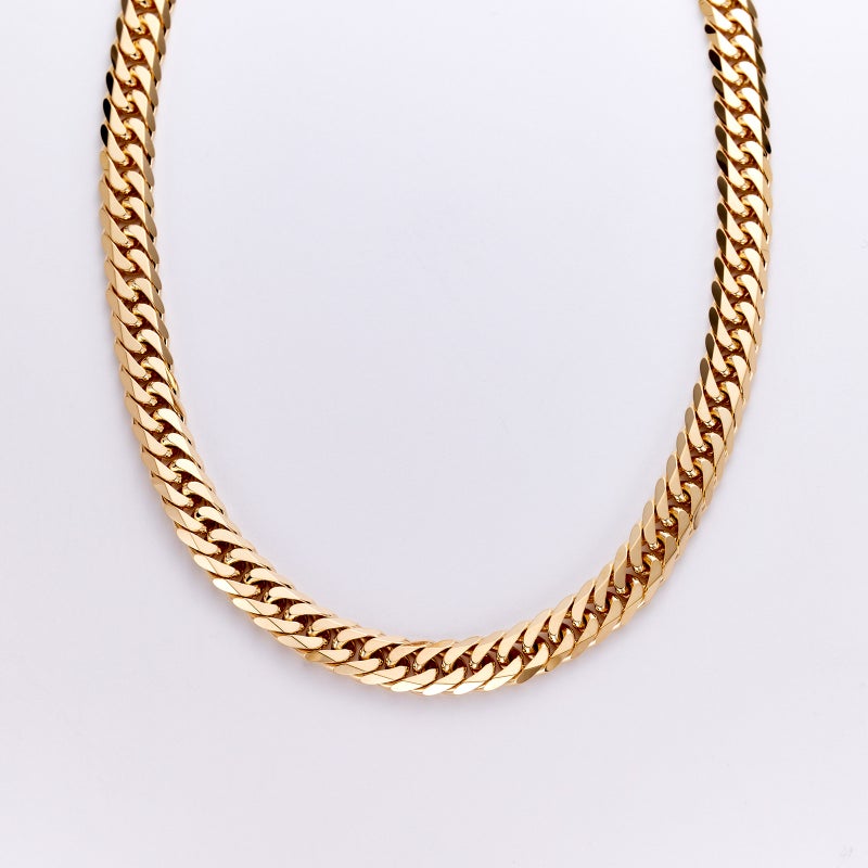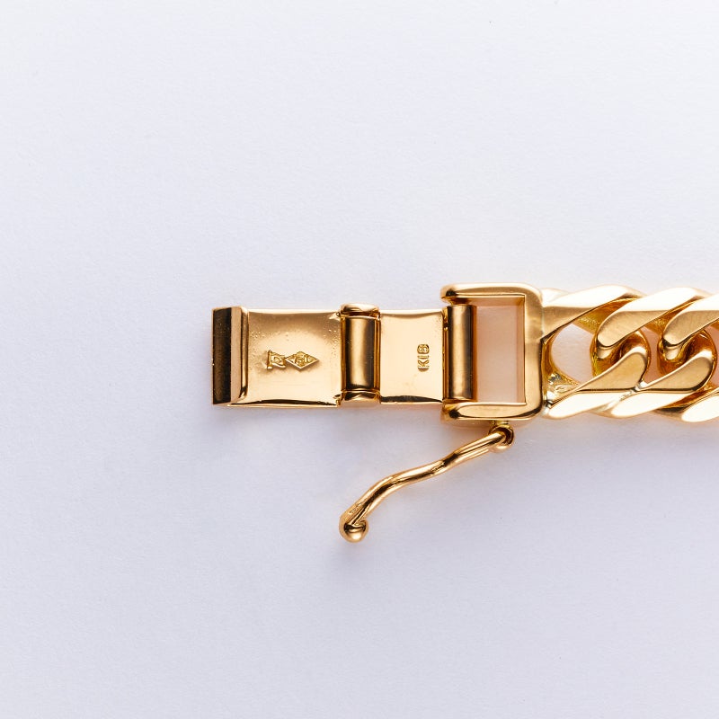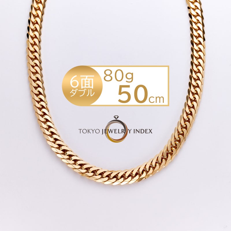 地金素材 :K18イエローゴールドカット数 :6面編み方 :ダブル重量(g) :80g長さ(cm) :50cm留め具 :中留め幅(mm) :7.6mm