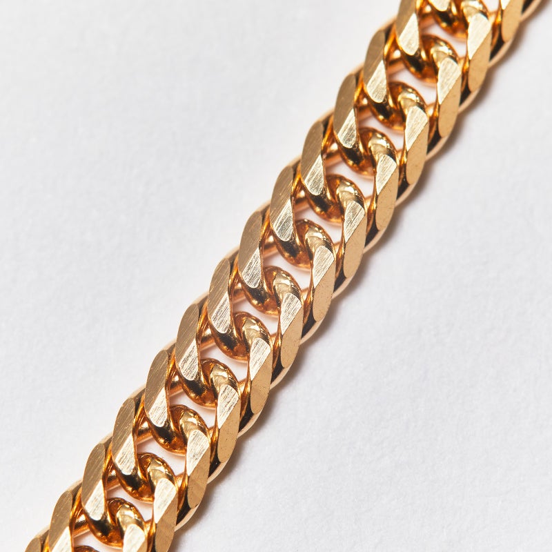 上下左右にカットを施した、輝きのある6面カット、ダブルの喜平ネックレスです。幅広く見え、カットが多い分輝きが増すのが特徴です。シンプルなチェーンはユニセックスにご愛用いただけます。独立行政法人造幣局の検定マーク(※ホールマーク)入り。