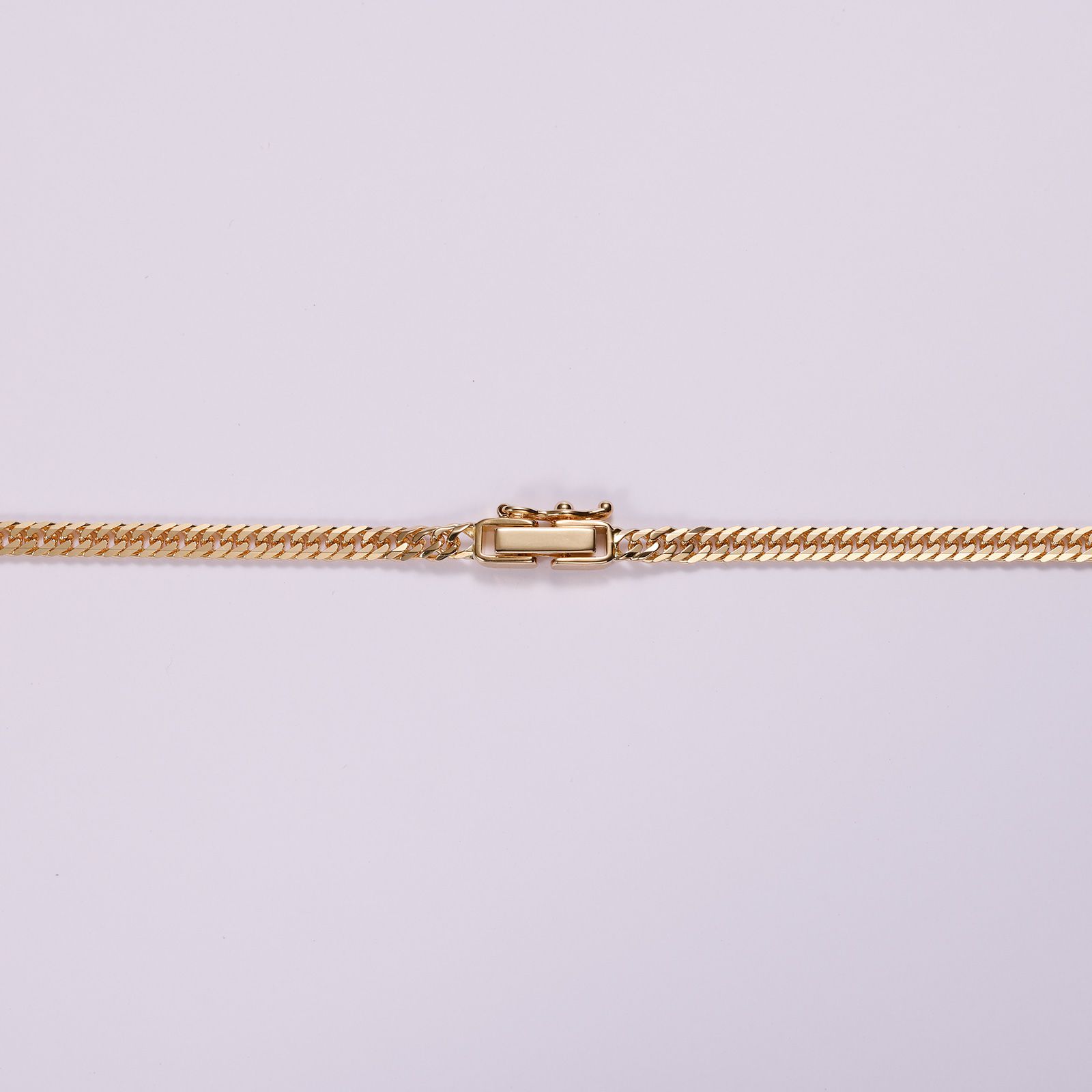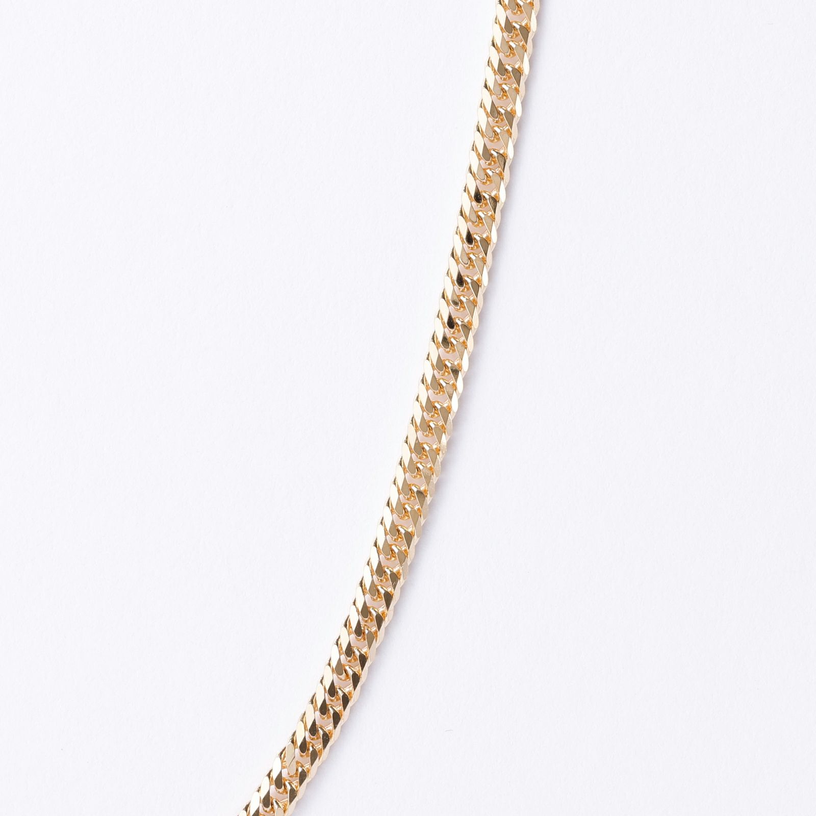 上下左右にカットを施した、輝きのある6面カット喜平です。幅広く見え、カットが多い分輝きが増すのが特徴です。シンプルなチェーンはユニセックスにご愛用いただけます。独立行政法人造幣局の検定マーク(※ホールマーク)入り。