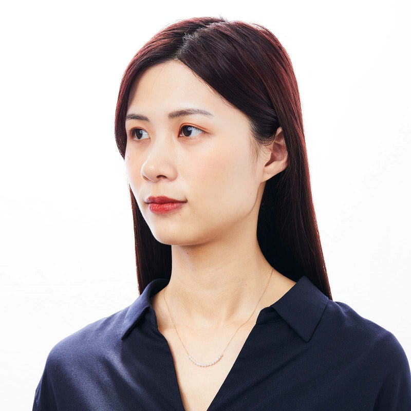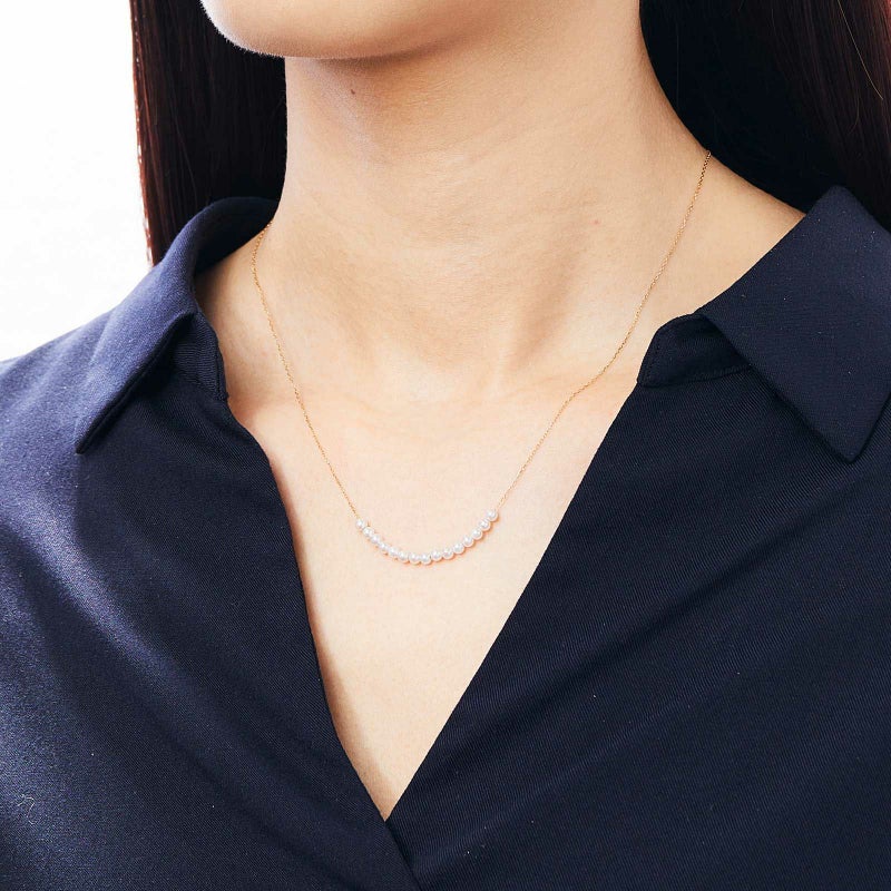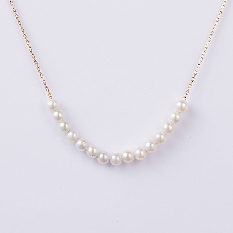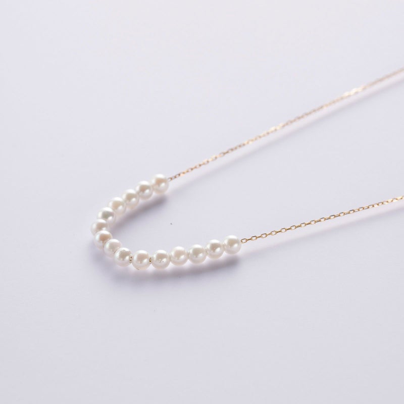 ベビーパールをチェーンに通したシースルータイプのネックレスです。ミニマルなデザインは、どんな装いにもあわせていただけます。ばらつきのないパールをご用意しておりますので、とても洗練された高級感を楽しんで頂けます。