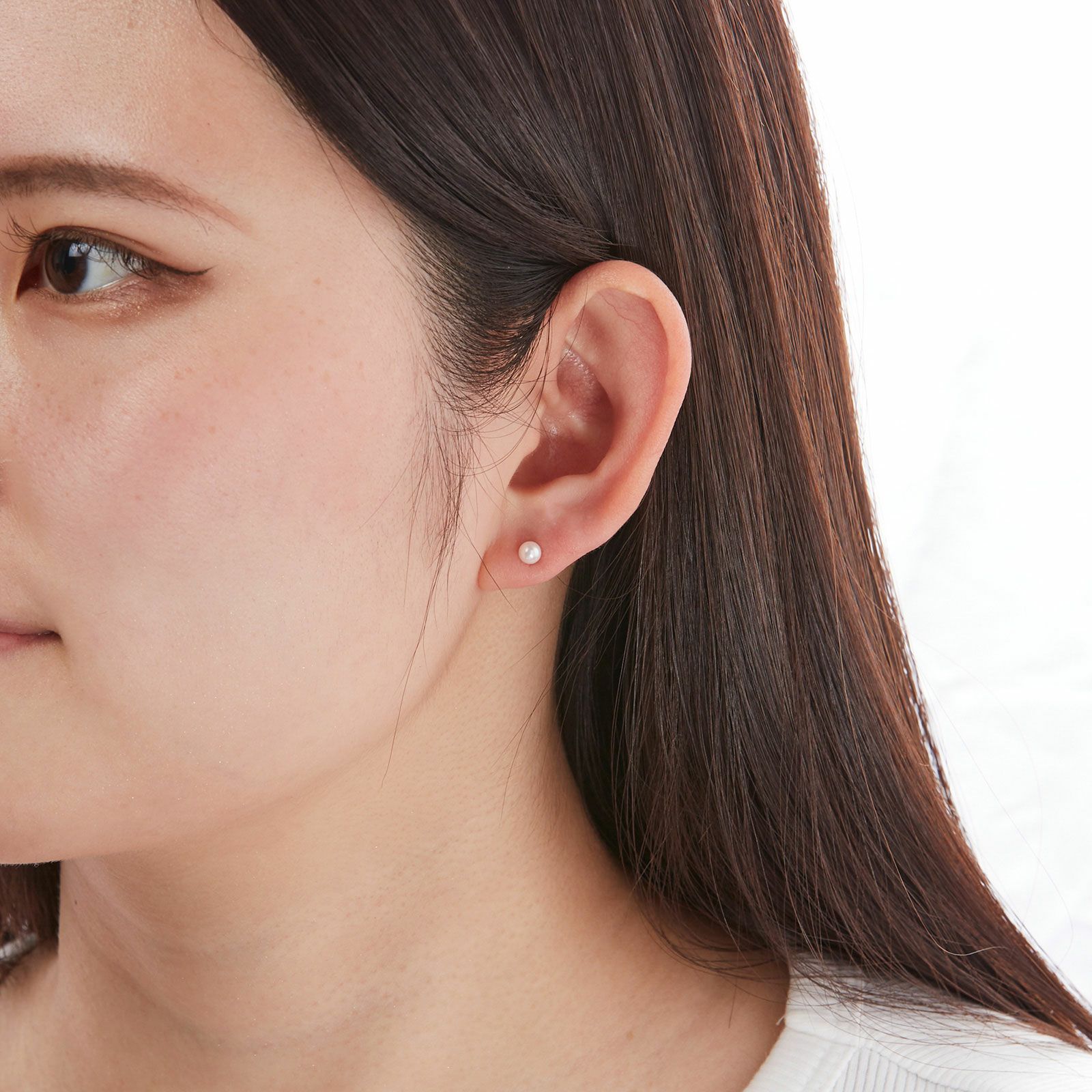 どの様なシーンでも活躍する、K18ホワイトゴールドの約4.0ミリパールピアスです。