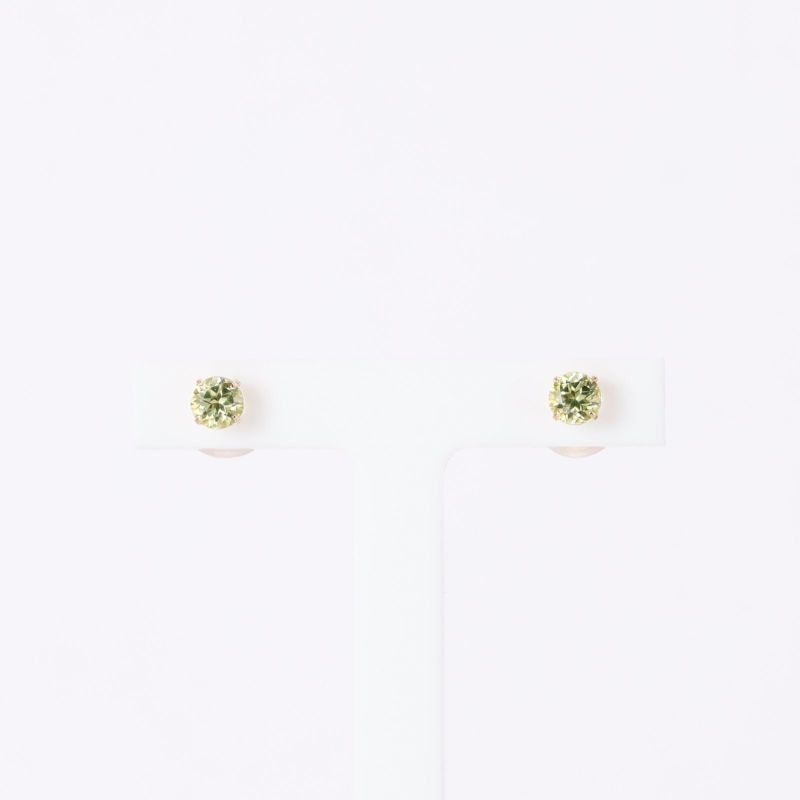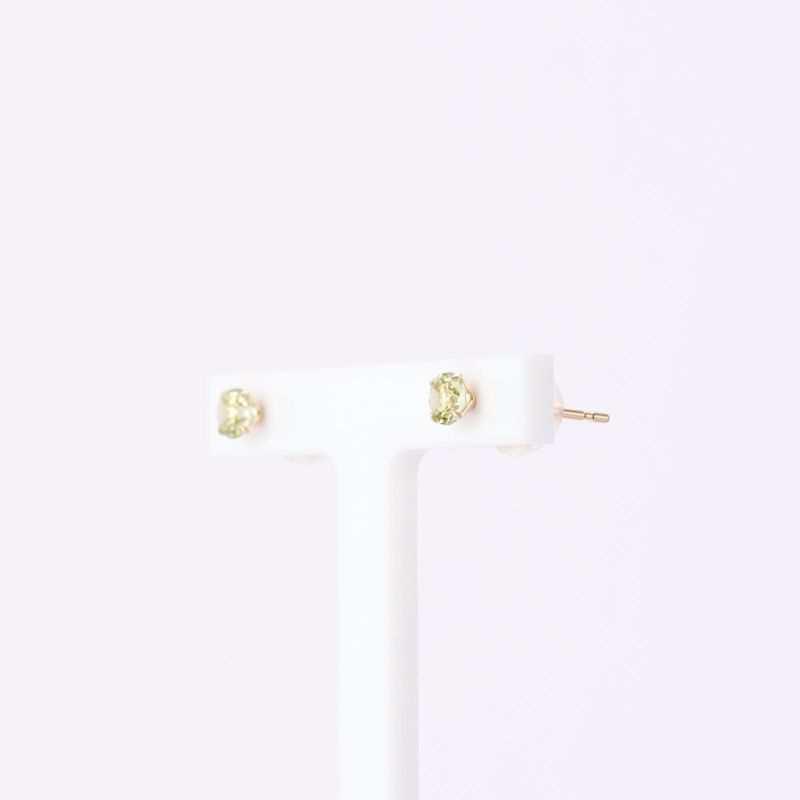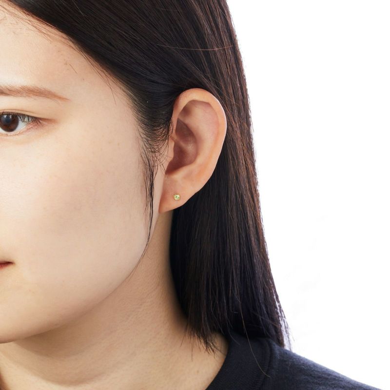 ペリドットをK18イエローゴールドの爪で留めた一粒ピアス。小ぶりながらゴールドとペリドットの薄い緑が美しいアイテムです。