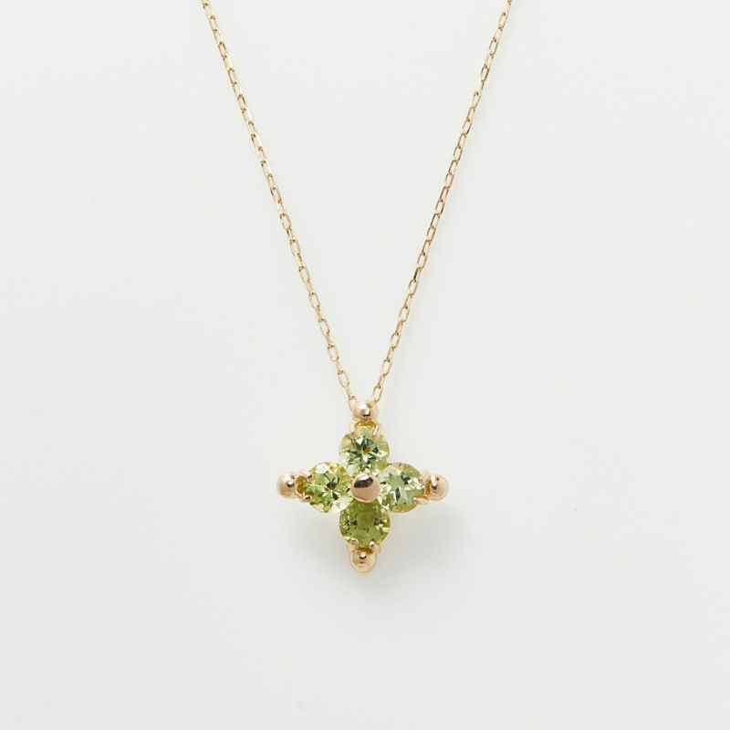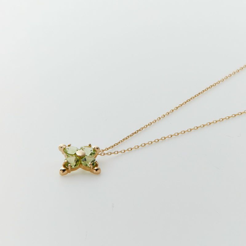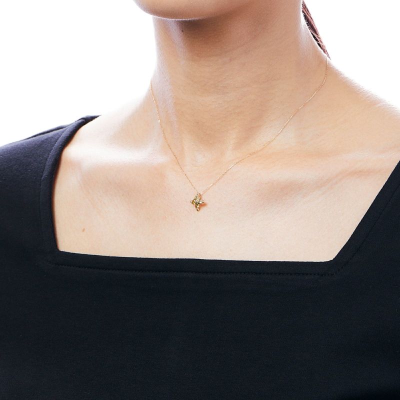 近頃人気が復活している色石のK10イエローゴールドペンダントネックレス。ペリドットの爽やかなグリーンがどんな着こなしにも彩りを添えてくれます。軽やかな色味で使いやすいペンダントです。
