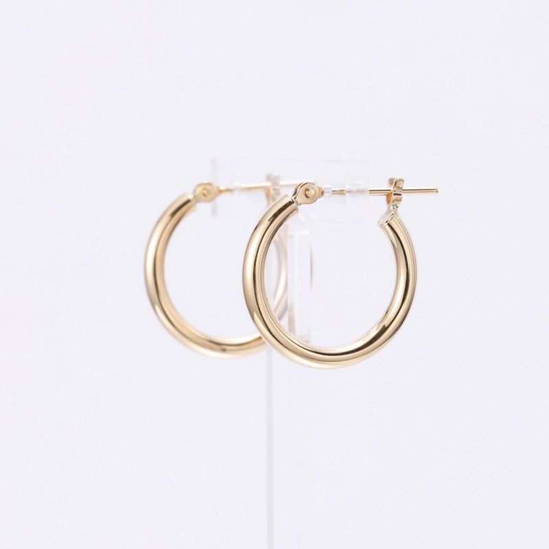 少し小さめのフープピアスです。シンプルなデザインは重ねて着けても、それだけ着けても存在感を放ちます。