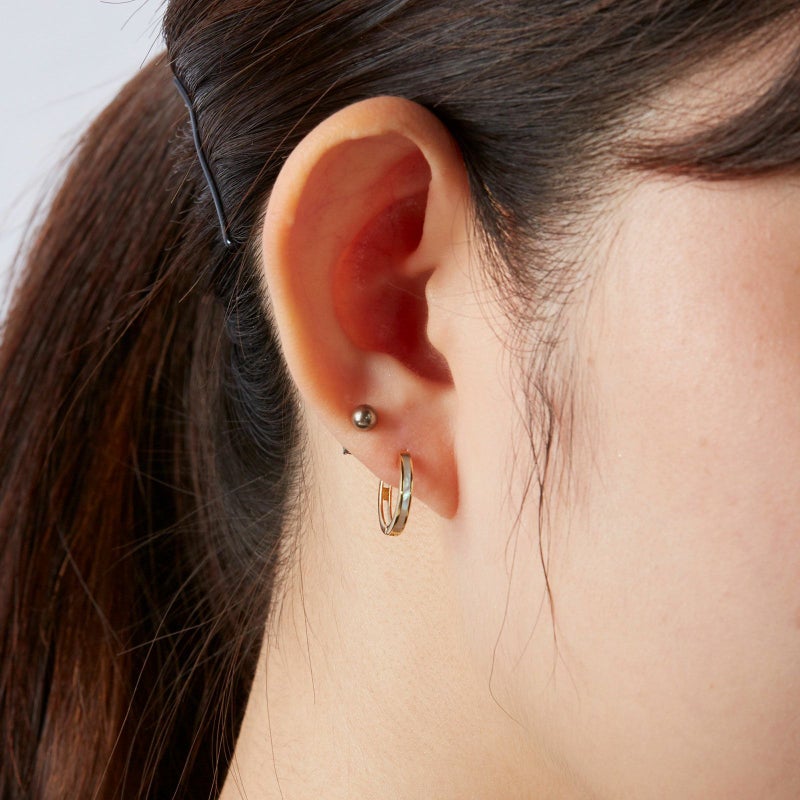 ホワイトシェルを丁寧にカービングしてフープのピアスを仕上げました。目指したのは、ミニマルな引っ掛かりの無さ。シェルの装飾が施されておりますので上品にお召いただけます。