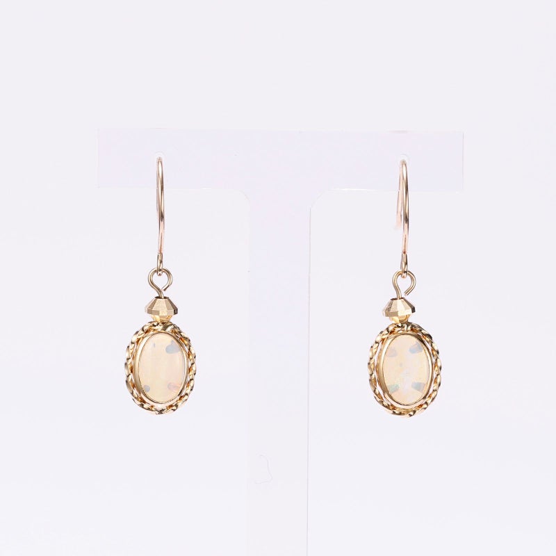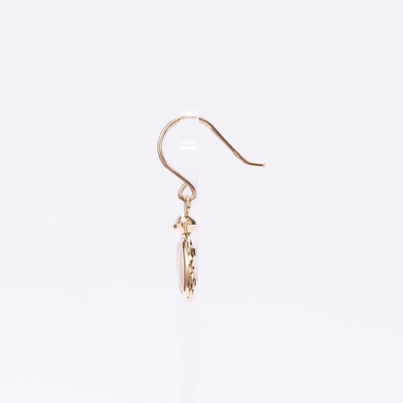ヨーロッパの美術館の作品をモチーフにオパールのピアスに仕上げました。オパールは地球の作品です。同じものは二つとない特別なオパールを、職人が一つ一つ丁寧に地金の額縁で縁取りました。揺れるたびに様々な色が見えるオパールをお楽しみください。