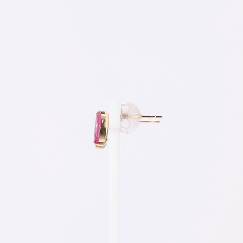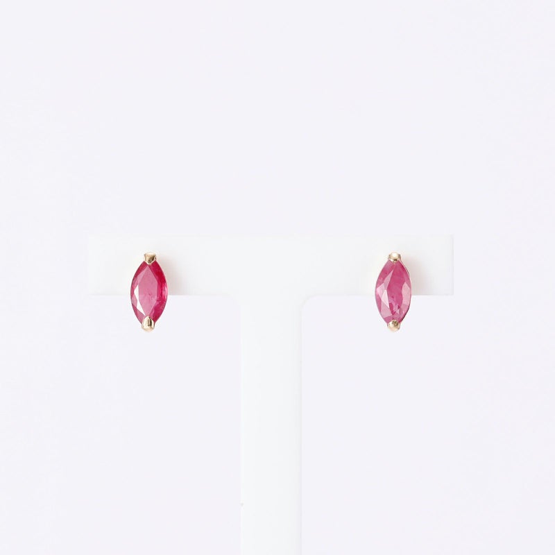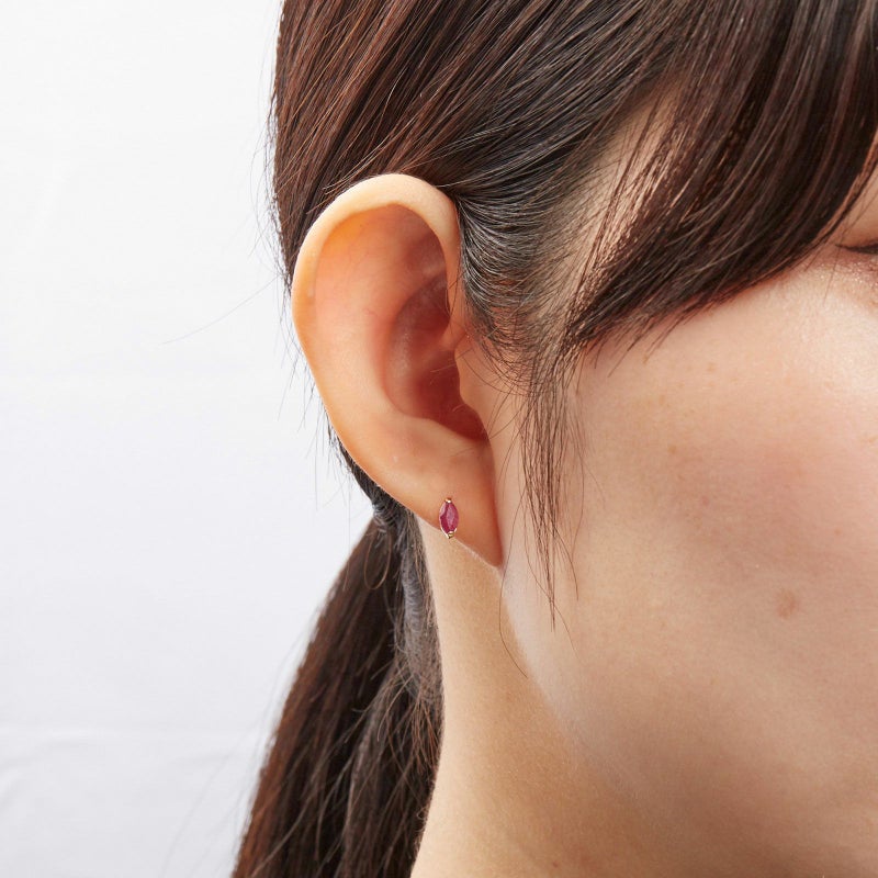 マーキスのルビーをシンプルなピアスにデザインしました。シンプルなカラーストーンは、どんな場面でもお召いただけるミニマルなデザインです。