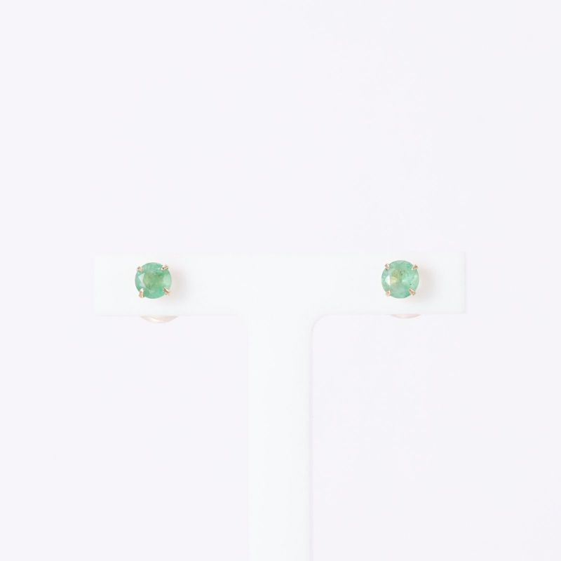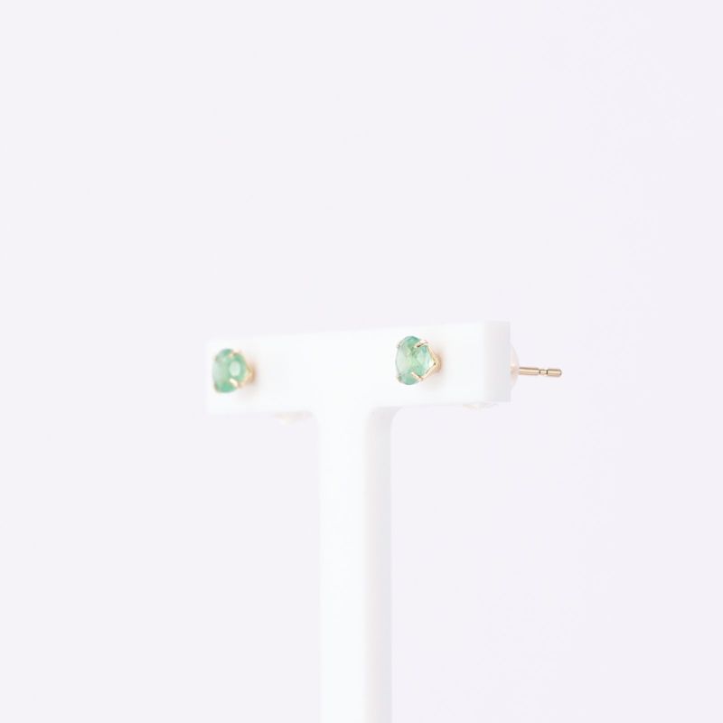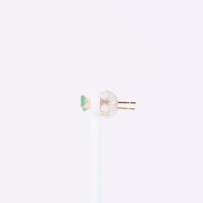 エメラルドをK18イエローゴールドの爪で留めた一粒ピアス。小ぶりながらゴールドとエメラルドのグリーンが美しいアイテムです。