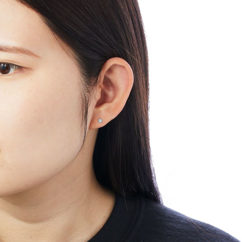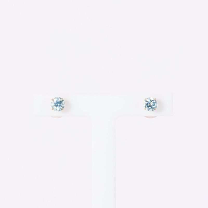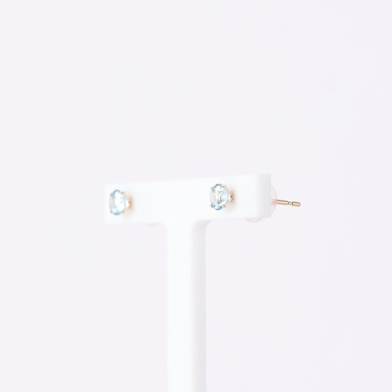 ブルートパーズをK18イエローゴールドの爪で留めた一粒ピアス。小ぶりながらゴールドとブルートパーズの水色が美しいアイテムです。