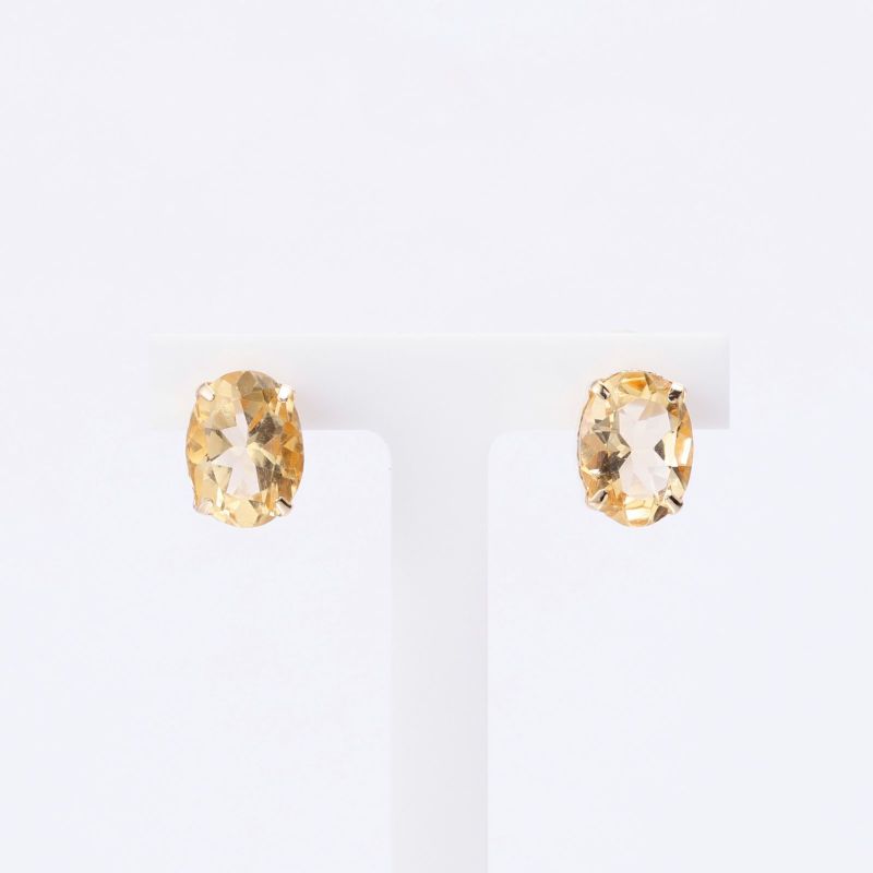 大粒シトリンをイエローゴールドに留めたシンプルなピアスです。石の美しさが目を引きます。