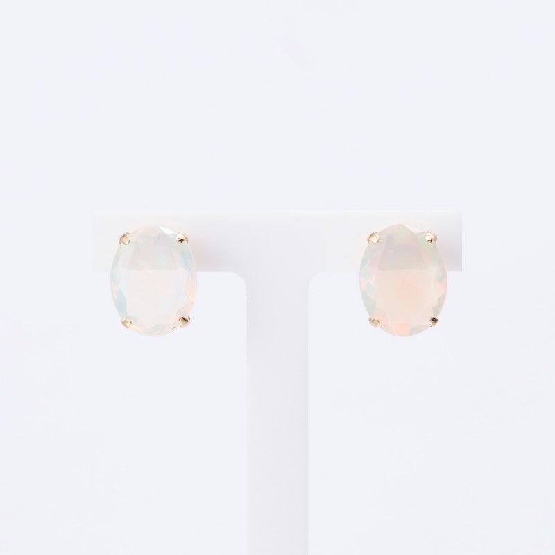 大粒オパールのシンプルなK18イエローゴールドピアスです。様々な色が浮かび上がる魅惑的な石をお楽しみください。