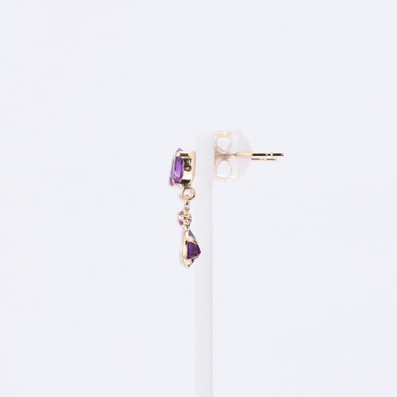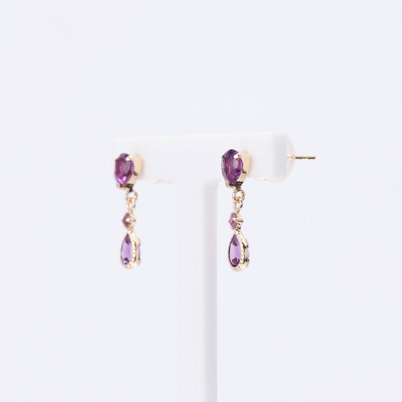 2粒の涙型アメジストと1粒のメレサイズのアメジストを動きのある揺れるピアスにしました。