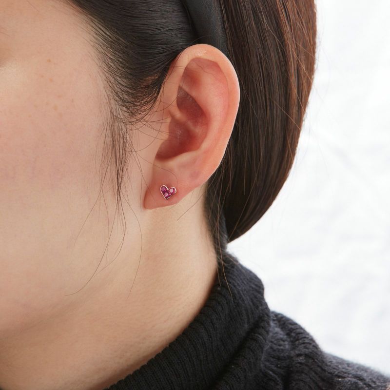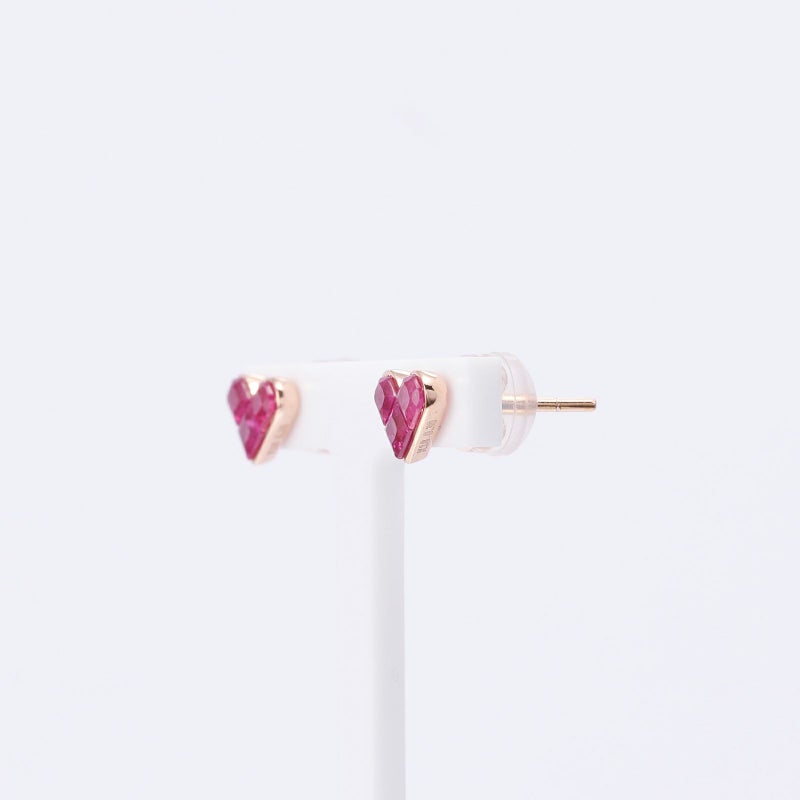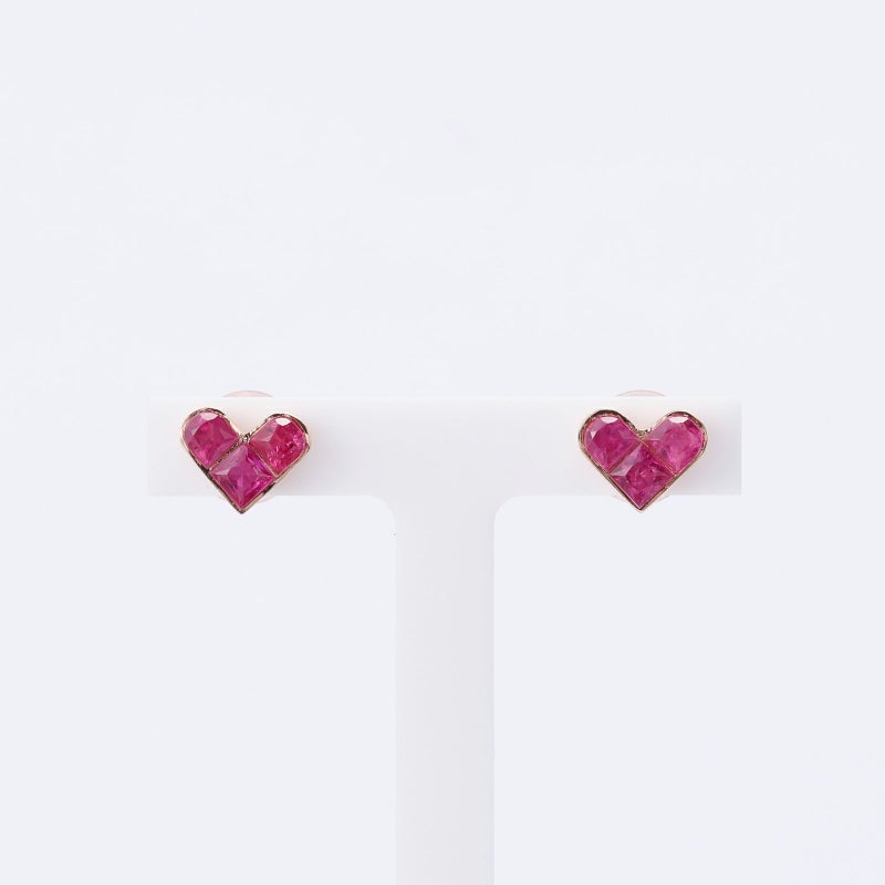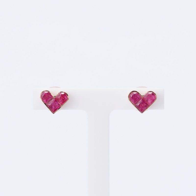 片耳3石のルビーをハート型にセッティングしました。K18ピンクゴールドでボリュームのあるピアスにしました。