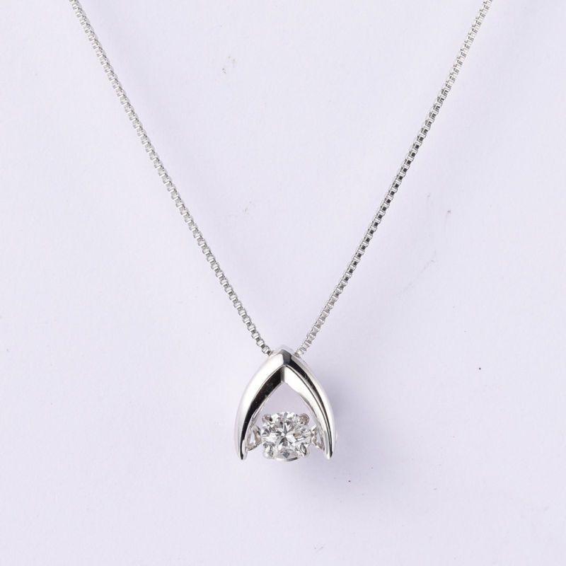 末広がりのシャープなペンダントトップに、ダイヤモンドを留めたダンシングストーンネックレスです。