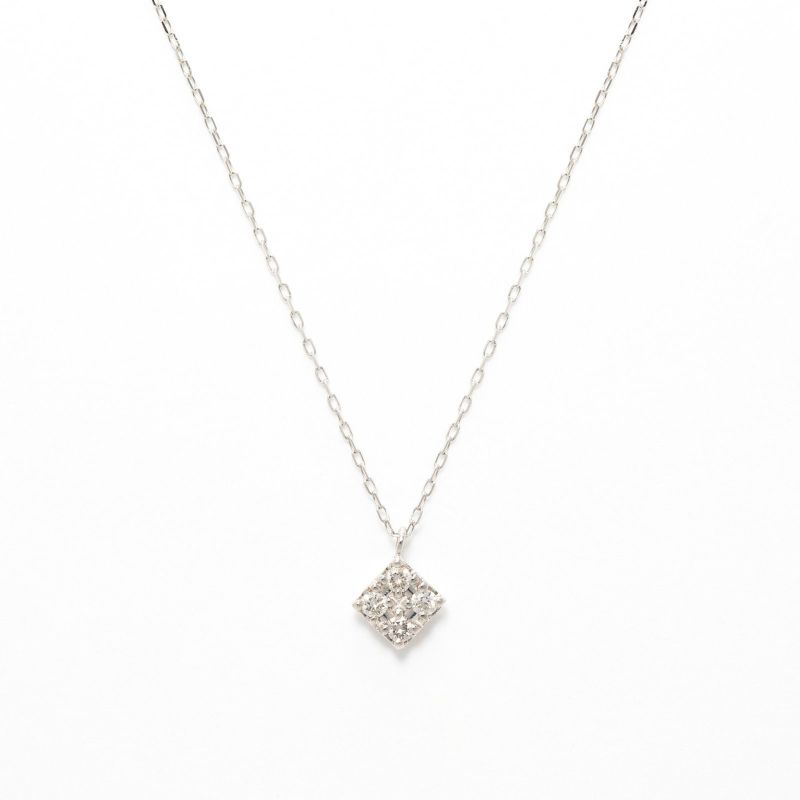 プラチナのダイヤモンドネックレス。0.05ctのダイヤモンドが4つ並んだ上品なアイテムです。