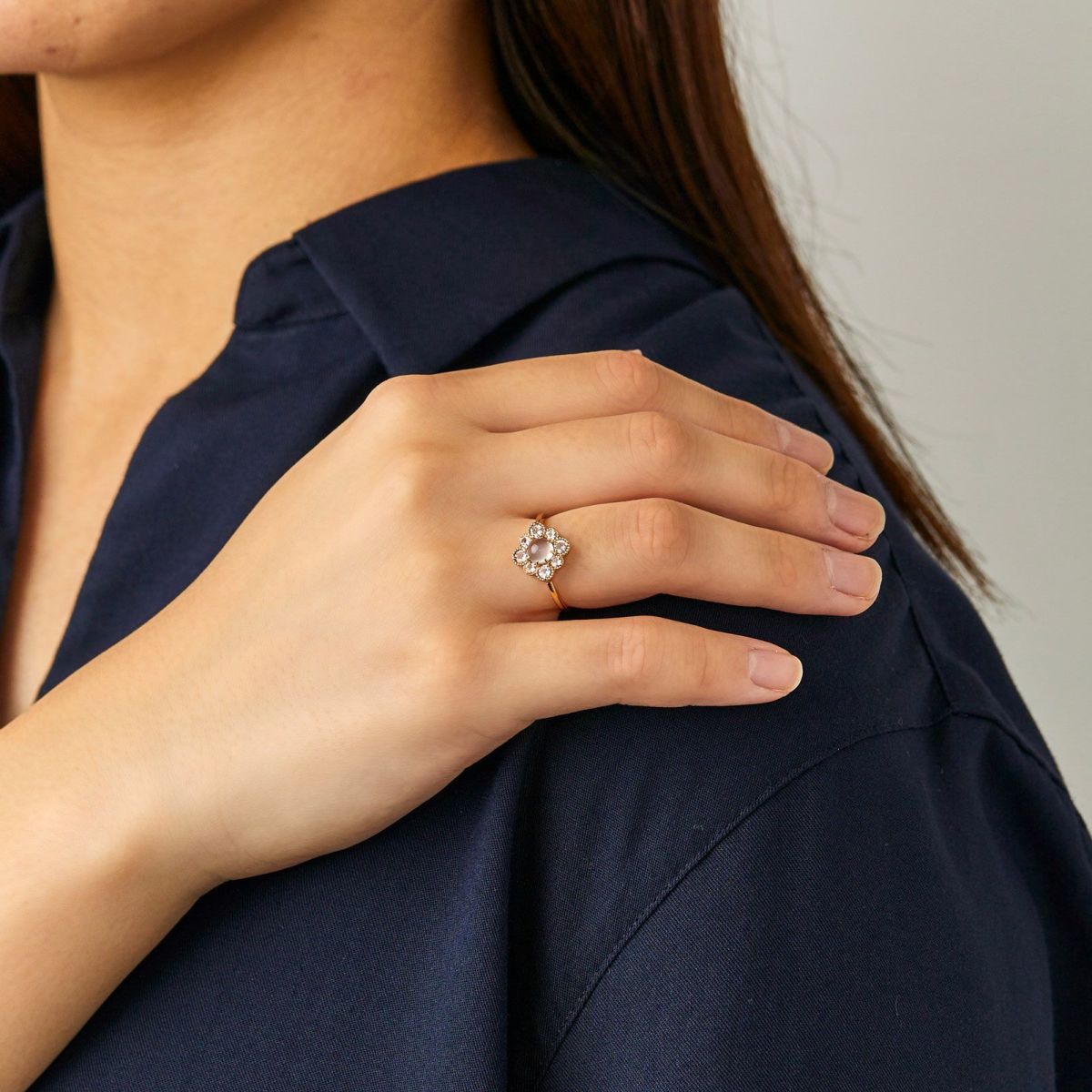 宝石の美しさを鏡を使わず感じて頂けるジュエリーとして、多くの人から愛されているリング。日本語では指輪というように輪の形にリングという意味があります。輪の形(リング)は、途切れ目がない事から永遠や終わりのない事という意味もあり、贈り物としても最適です。指の位置によってさまざまな意味合いがあり、サムリングやピンキーリング等つける指によって呼称が変わります。