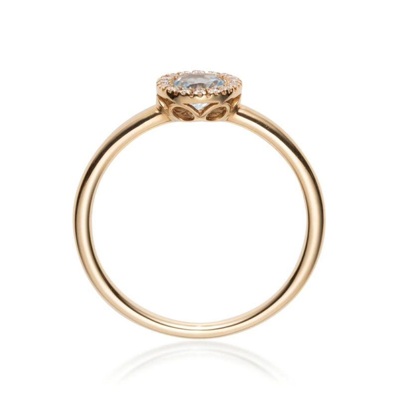 マイクロセッティングのメレダイヤモンドの中心に美しいカラーのアクアマリンを留めました。プレシャスという最愛の人という意味の名前が付けられたこちらのリングは、12ヶ月分のご用意がございます。お守り石としても、プレゼントとしてもご愛用下さい。