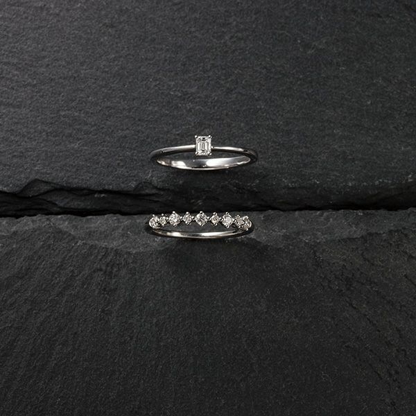 シンプルなフォルムにスクエアカットのダイヤモンドを際立たせたファビュラスなリング。
