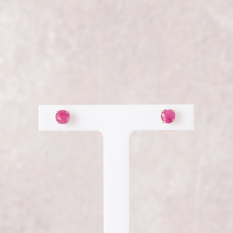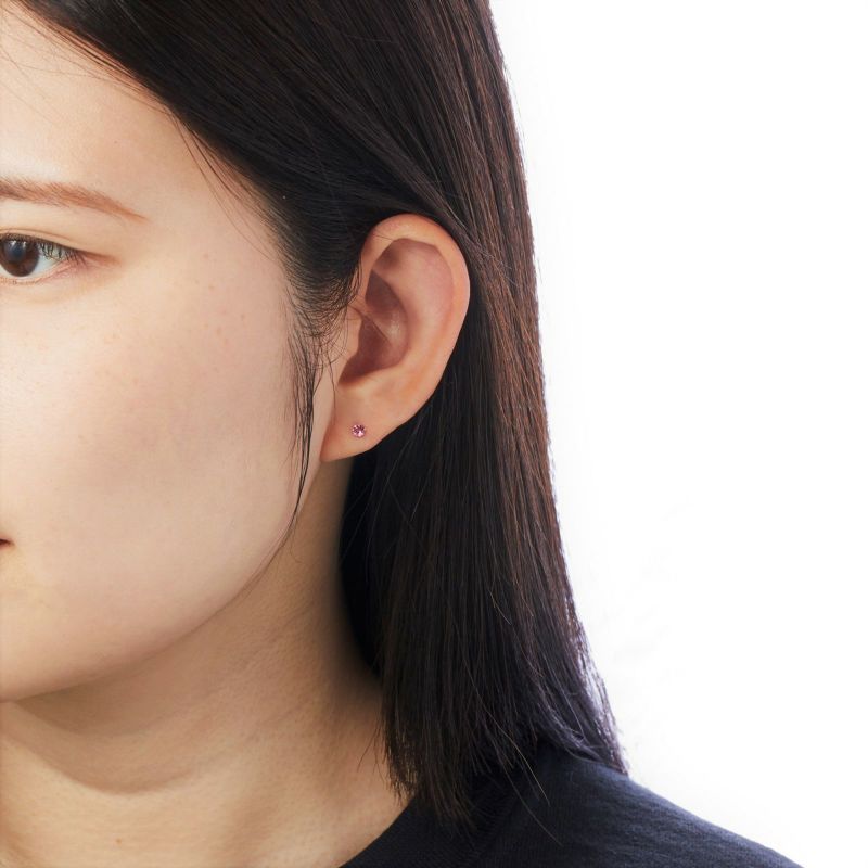 ルビーをK18イエローゴールドの爪で留めた一粒ピアス。小ぶりながらゴールドとルビーのピンクが美しいアイテムです。