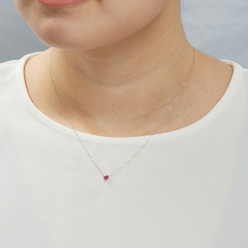 ハートシェイプのルビーを1石だけ使用したミニマルでシンプルなネックレスです。両釣りのネックレスなので、留め具が前に来ることなくお楽しみいただけます。ルビー自体をハートにカットしておりますので、洗練された大人っぽいハートを楽しんでいただけます。