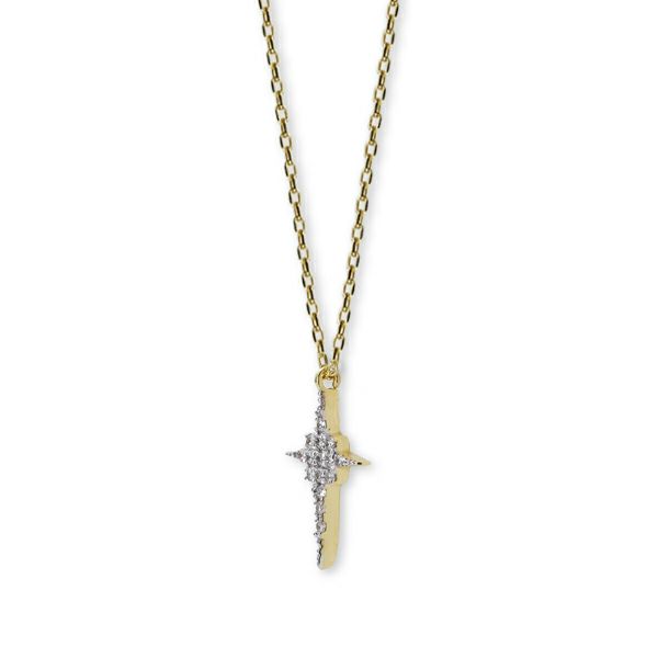 シャープなフォルムのクロスデザインネックレス。個性的なデザインはシンプルコーデののワンポイントに。