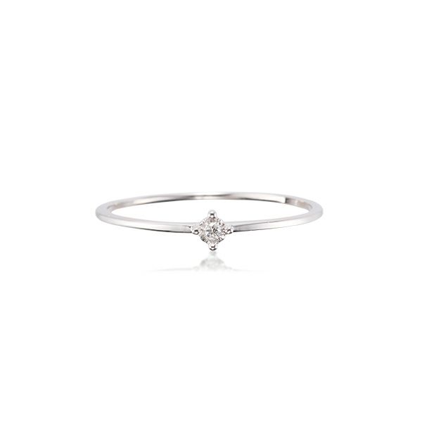 4本の爪にダイヤモンドがセッティングされたシンプルで美しいリング。華奢なサイズ感だからレイヤードにもおすすめ。