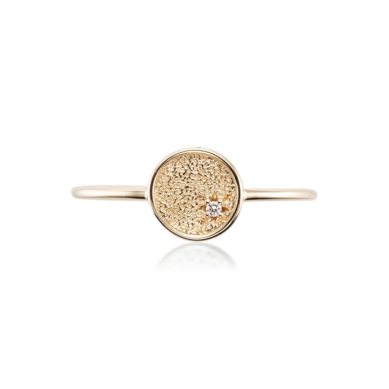 コインモチーフでリングをデザインしました。ダイヤモンドを後光留めで留めていますので、小さいながらもきらめきます。