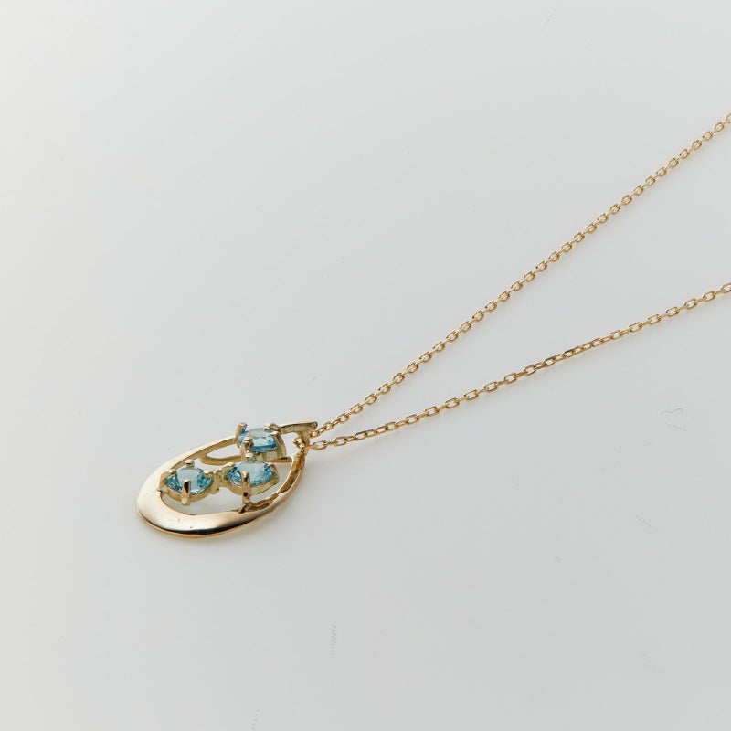 近頃人気が復活している色石のK10イエローゴールドペンダントネックレス。ブルートパーズの爽やかなスカイブルーがどんな着こなしにも彩りを添えてくれます。シンプルなデザインで使いやすいペンダントです。