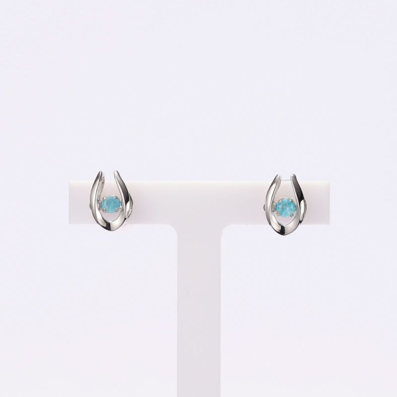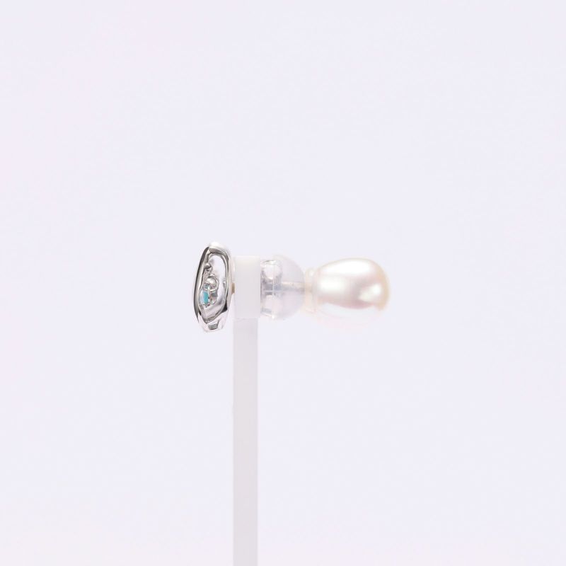 ネオンカラーの発色の希少石、パライバトルマリンが耳元で揺れるピアスです。グリーン系の色は肌映りが良く、お顔もジュエリーも際立って見えます。付属の淡水パールのキャッチで雰囲気を変えていただくこともできます。