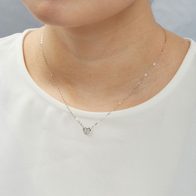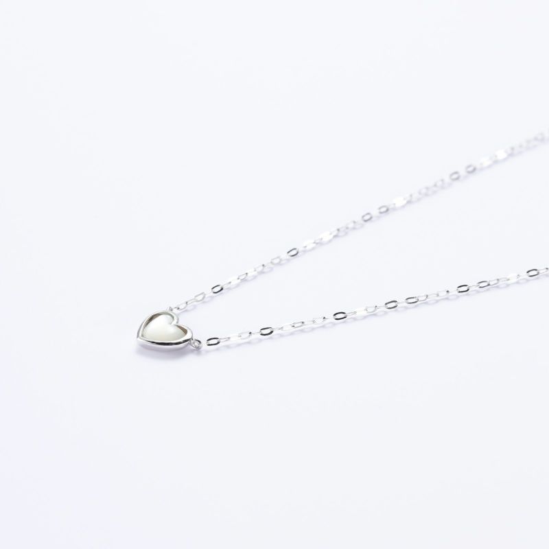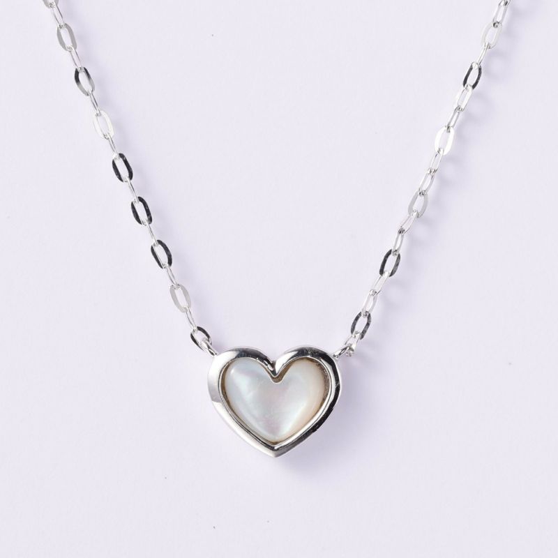 シェルを手作業で彫って、ぷっくりしたハートを作成しました。シェルは別名マザーオブパールとも呼ばれています。パールを生み出すマザーオブパールは、愛情や母性、包容力を授けるパワーがあると言われています。