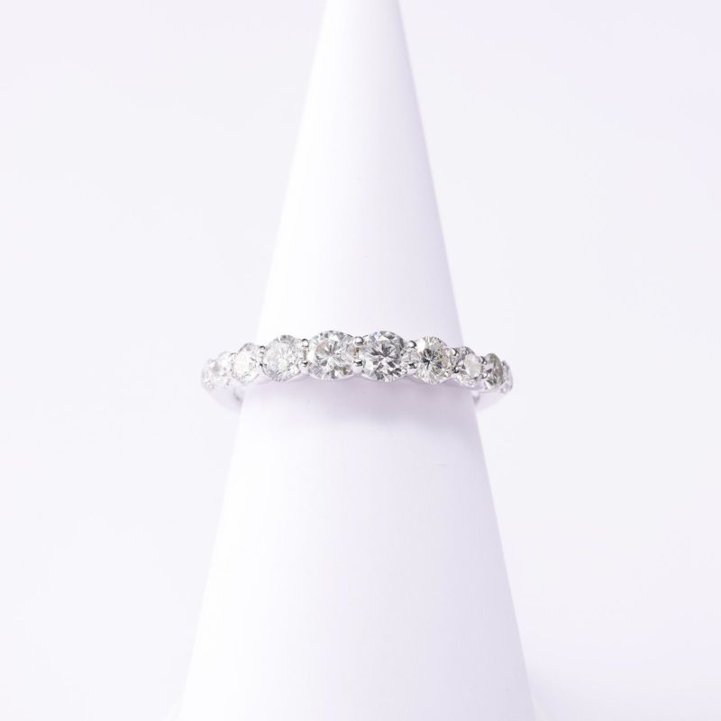 横から見るとハートの台になっているエタニティリングです。全部で1.0ctのダイヤモンドが使われている、とても華やかなリングとなっております。一生使えるリングをぜひお手元に。