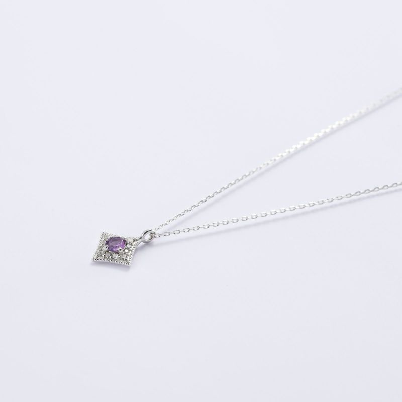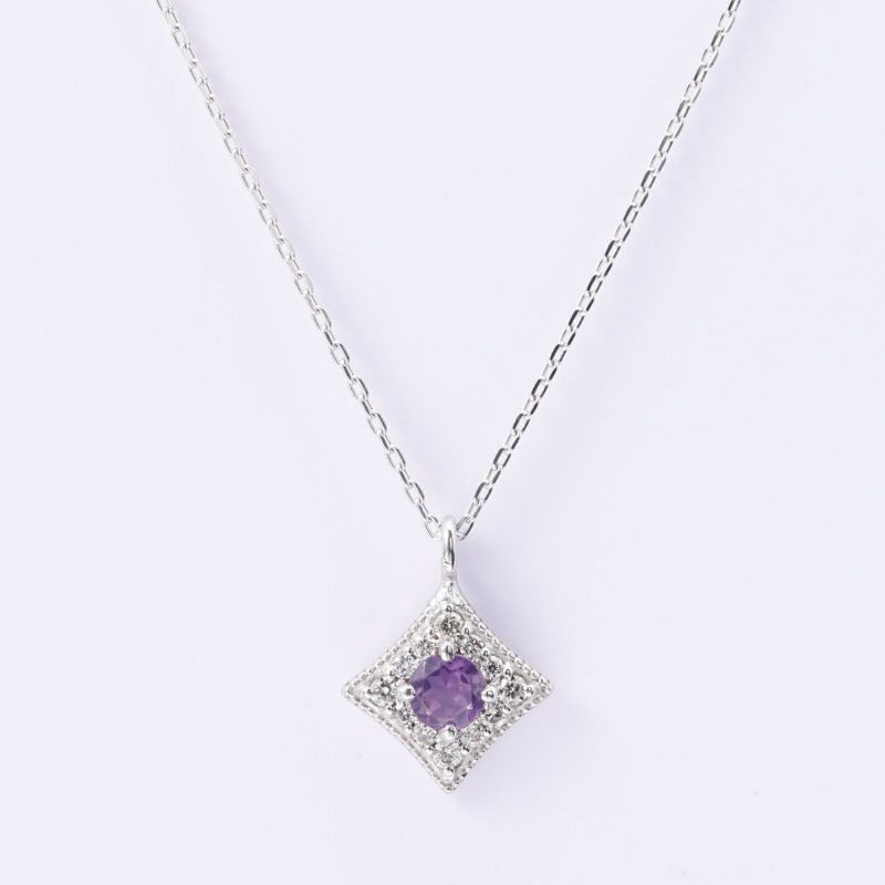 2月の誕生石であるアメジスト。さり気なく胸元を彩るパープルが魅力です。