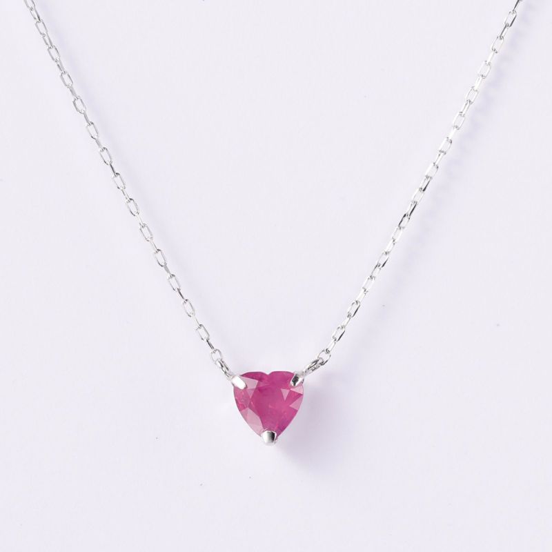 ハートシェイプのルビーを1石だけ使用したミニマルでシンプルなネックレスです。両釣りのネックレスなので、留め具が前に来ることなくお楽しみいただけます。ルビー自体をハートにカットしておりますので、洗練された大人っぽいハートを楽しんでいただけます。