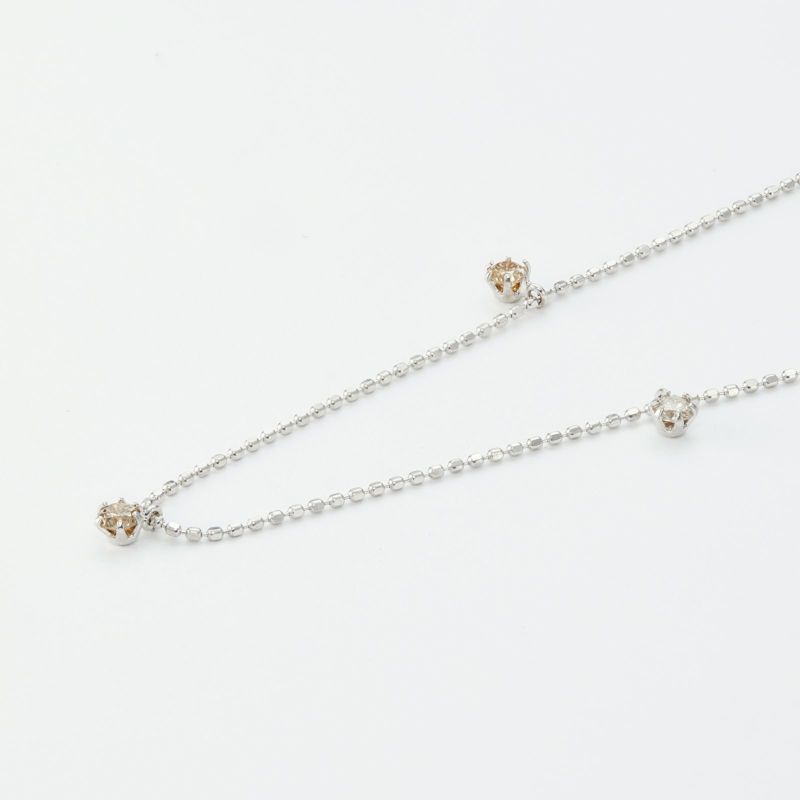 K18ホワイトゴールドのステーションネックレス。合計0.3ctのダイヤモンドが散りばめられたネックレスはコーディネートのアクセントになる1本持っておきたいアイテムです。