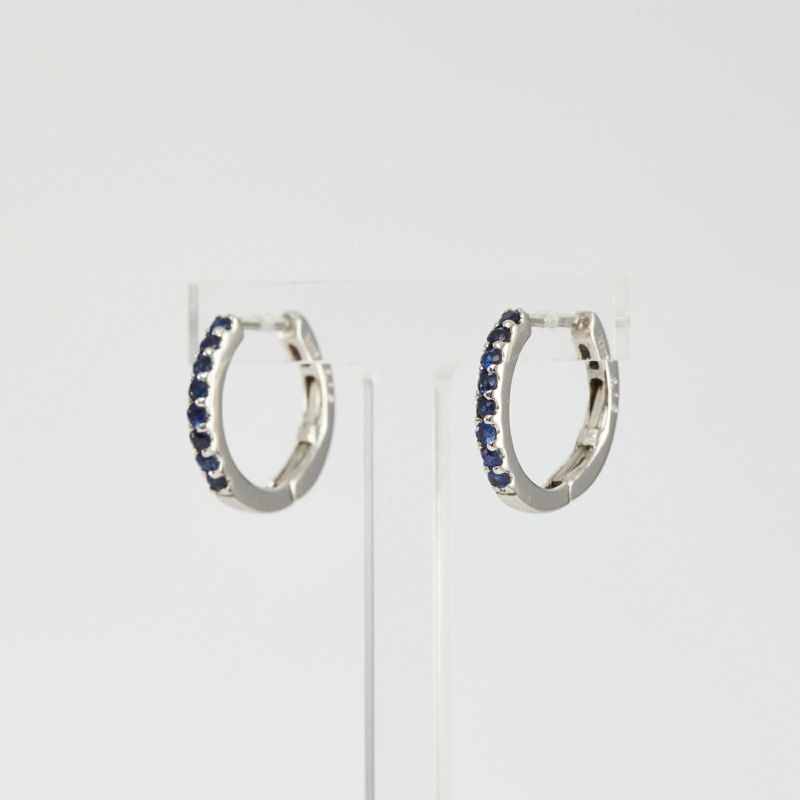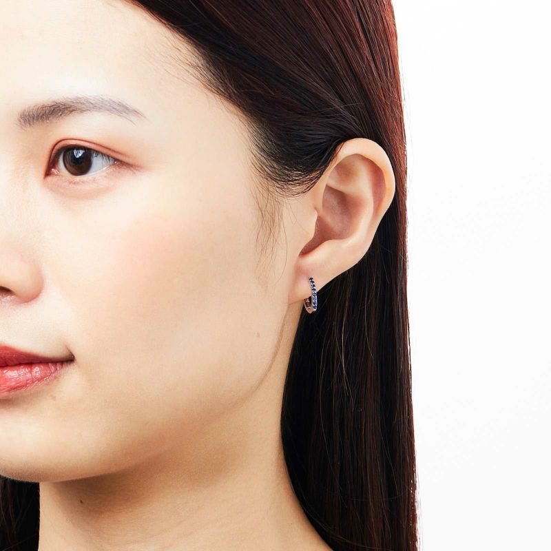 K18ホワイトゴールドのサファイアのラインフープピアス。合計0.24ctのサファイアが上品に耳元で輝き、アクセントになります。