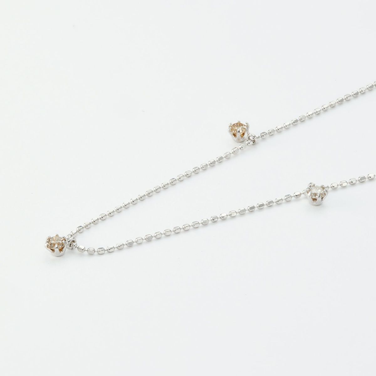 ホワイトゴールドとは、純金に他の金属を混ぜた合金です。24金(純金/金含有率100%)に銀やパラジウムなどの白色金属を混ぜることでこの色を出しています。仕上げにロジウムでコーティングしたものが主流で、WGと表記されます。