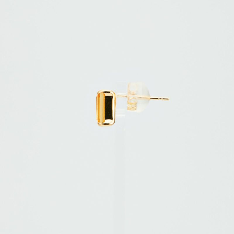 シトリンのバゲットカットピアス。大きめですが、シトリンは肌なじみがいいので派手になりすぎず、でも華やかさは演出してくれるのでオンオフ問わずお使いいただけます。