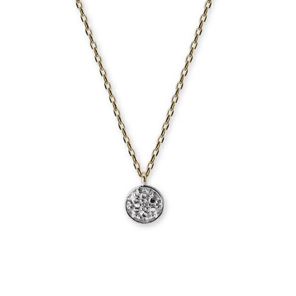 ダイヤモンドの周りに施されたカッティングがスタイリッシュなネックレス。華やかでボリューミーなデザインだから、特別な日に身につけたい。