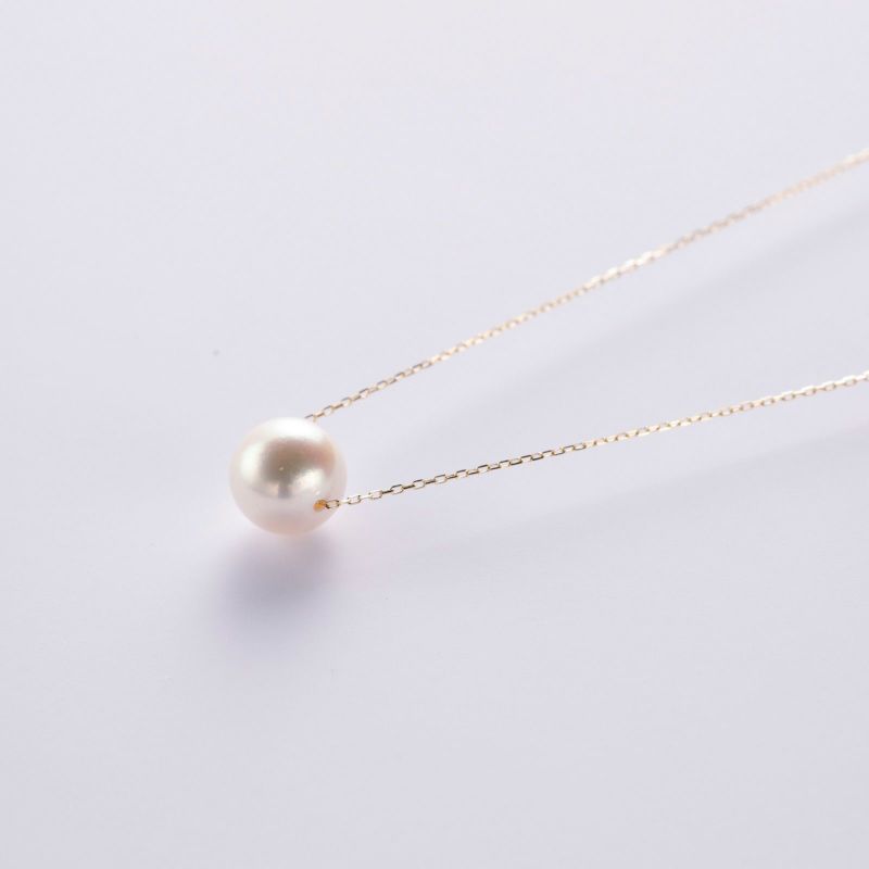8mmUPのパールにイエローゴールドのチェーンが通ったネックレス。華やかなパールはひとつ使いでも、重ね付けにもおすすめです。